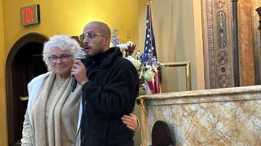 Ao fim do encontro no Brooklyn, Liora e Arab se levantaram e se abraçaram.
