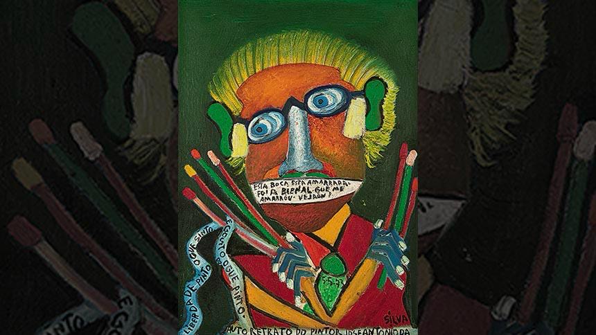 Em um autorretrato, José Antônio da Silva se pinta com os pincéis firmes nas mãos e, sobre a face, coloca uma espécie de mordaça onde escreve a acusação: “esta boca está amarrada, foi a Bienal que me amarrou. Vejam!”.